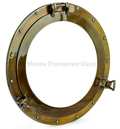 Medieval Replicas Marine Nautical Store bullauge, aluminium, antik version ~ hamnfönster, glas, fartyg, bullöga, dekor, 43,2 cm