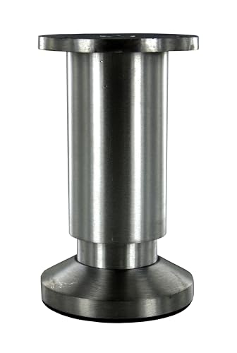 Cime -Möbelben, cylindrisk form. Passar alla typer av dekor. 38 mm fot. Skruvplatta D58 mm. H.120 mm. Justerbar cylinder. Satin borstad förnicklad aluminium. Bordsben.