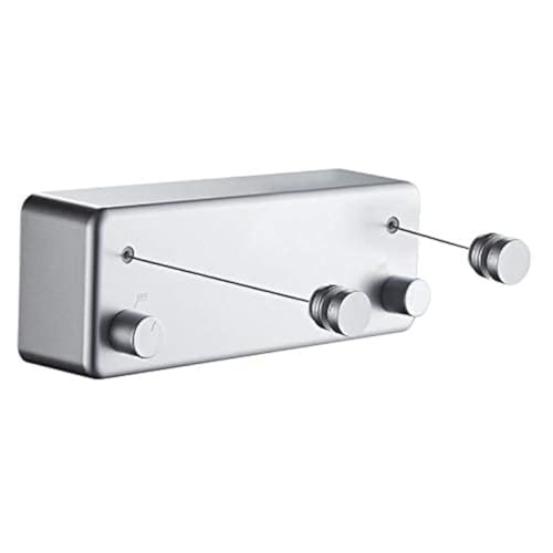 JOOM Infällbar klädstreck inomhus utomhus kläder rep kraftigt rostfritt stål linje tvättlina för badrum hotellstil 30 cm med ABS-fodral + aluminium (två linjer (borr), blå grå)