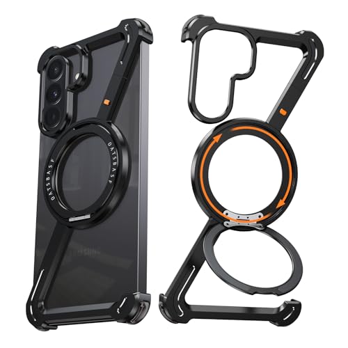 NIFBANG Z form för Samsung Galaxy A56-fodral, med 360° vridbar magnetiskt stativ mobilskal, ramlöst aluminium militär stötsäkert skyddsfodral för Samsung Galaxy A56 tunt stötdämpande fodral (svart)