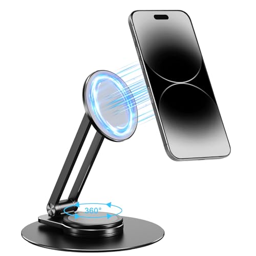 elitehood Kraftigt telefonstativ i aluminium, magnetiskt mobiltelefonstativ för skrivbord, för Magsafe iPhone-stativ, kompatibelt med iPhone 15 14 13, MagSafe-fodral, Kindle, iPad och surfplatta