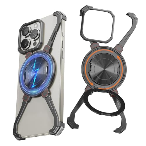 NIFBANG X form för iPhone 16 Pro fodral med magsafe, 360° roterbar magnetiskt stativ, ramlös aluminium metall tunt mobiltelefonfodral, militär kvalitet stötsäkert skyddsfodral stötfångare smal