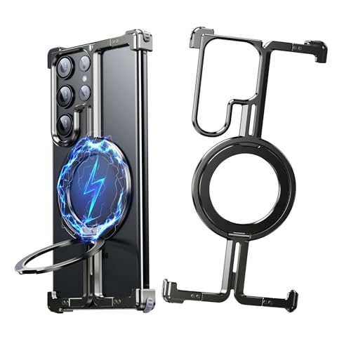 NIFBANG för Samsung Galaxy s24 ultra fodral, aluminium ramlöst militärt stötsäkert mobiltelefonfodral för magsafe med magnetstativ, magnetiskt repfritt kameraskydd för Samsung s24 ultra skyddsfodral