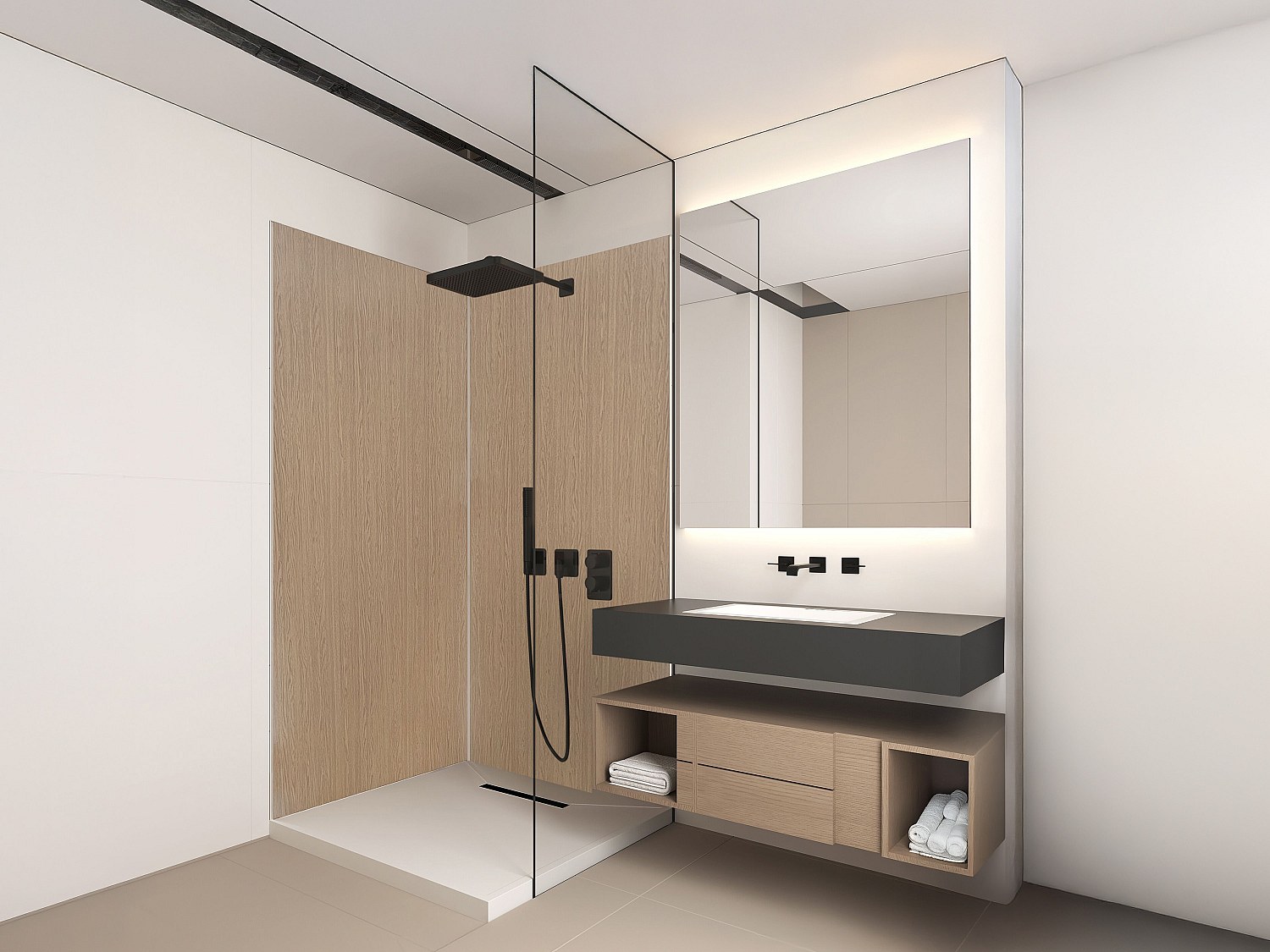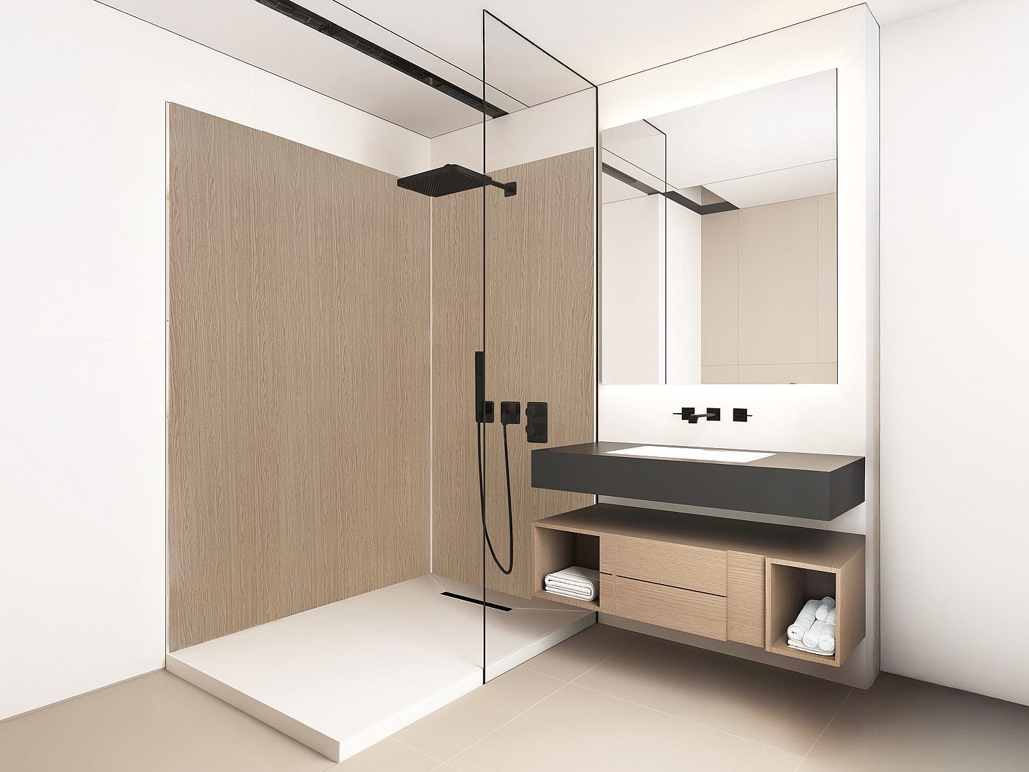 Set med 2 väggpaneler för dusch i träeffekt av aluminium med profiler - 2 x L90 x H210 cm ENEKO