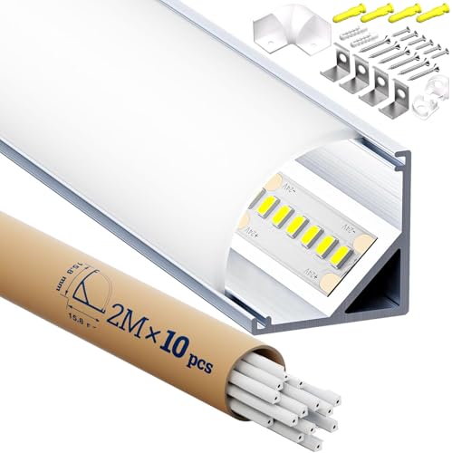 Efishine Pack med 10 LED-profiler aluminium 10 x 1 m, V-formad aluminiumprofiler med mjölkskydd, ändlock och monteringsfäste för remsor, mycket enkel installation