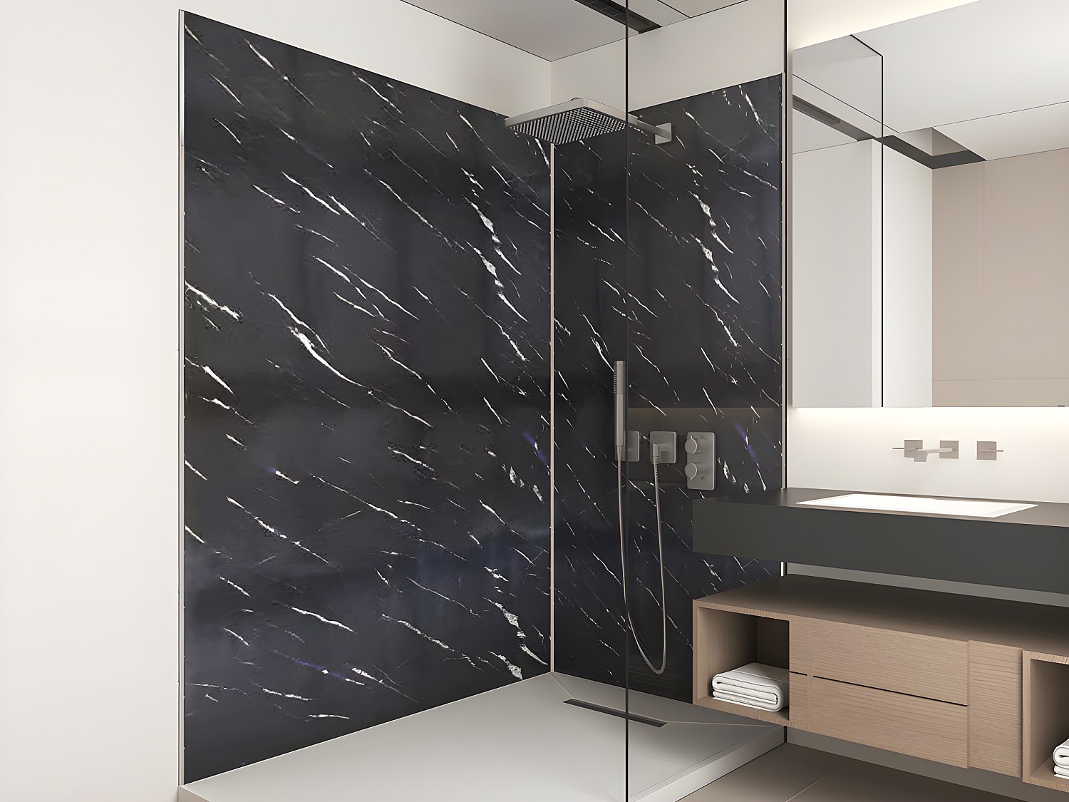 Set med 2 marmoreffekt duschväggspaneler i aluminium med profiler - B90 x L120 x H210 cm - ENEKO