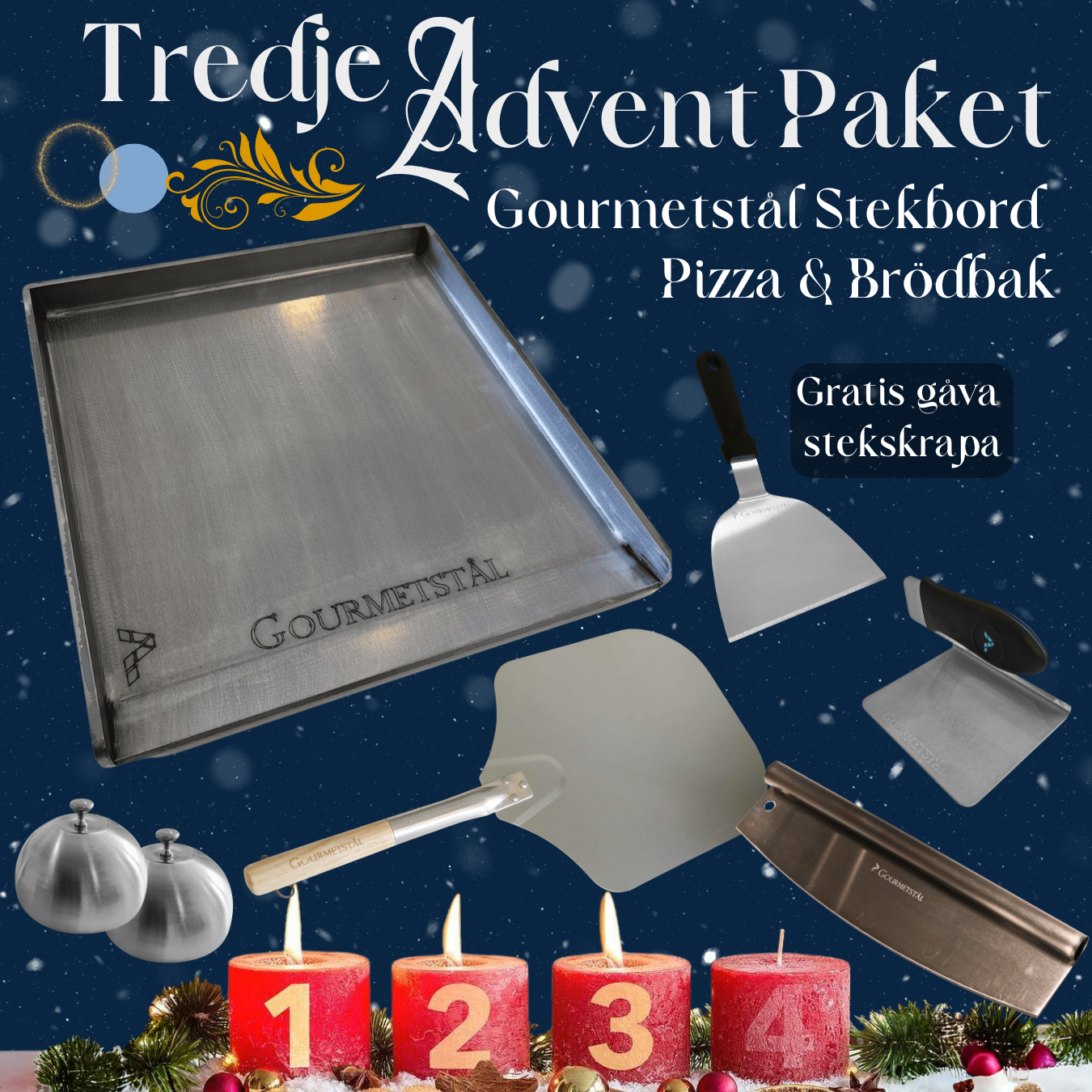 3e Advent Gourmetstål - stekbord, pizza & brödbak (Välj ditt paket här: Gourmetstål art 2025 + Aluminium spade + pizzaskärare båge rostfri + gratis gå