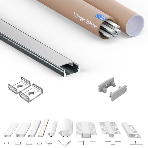 Tivendis LED aluminiumprofil 2 m, set om 6 delar, mjölkaktig | AF-profil för LED-remsor upp till 12 mm | aluminiumprofil, LED-list, kökstak | aluminium, U-profil, LED, set om 6