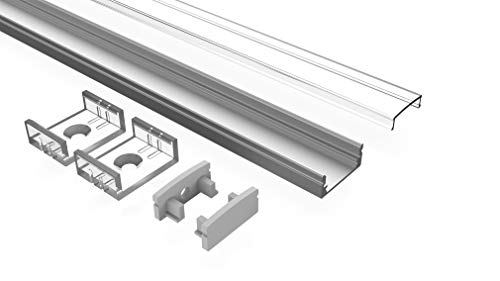 Tivendis Led aluminium profil 2 m AF komplett set för remsor/ränder upp till 12 mm bred | lock transparent klara, ändlock, fästklämmor | U-form ytmonterad taklist väggprofil eloxerad