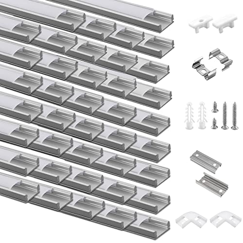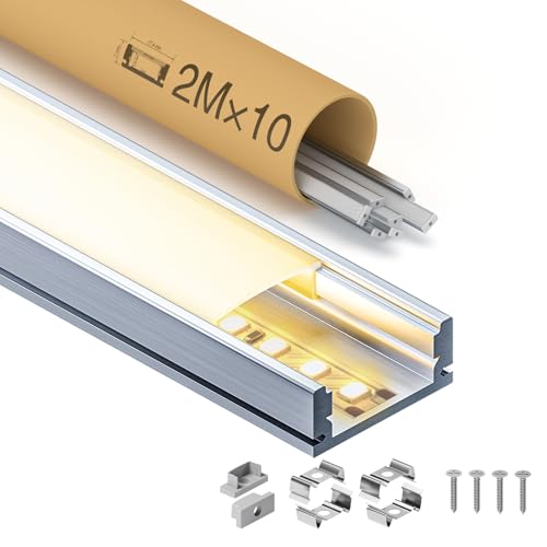 20-pack LED-profil aluminium 20 x 1 m, U-form aluminiumprofil med mjölkaktigt skydd för LED-remsor, ändlock och monteringsklämma för LED-remsor, mycket enkel installation