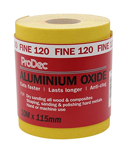 ProDec 120 korn fin kvalitet gul aluminiumoxid slipande sandpapper 10 m x 115 mm rulle
