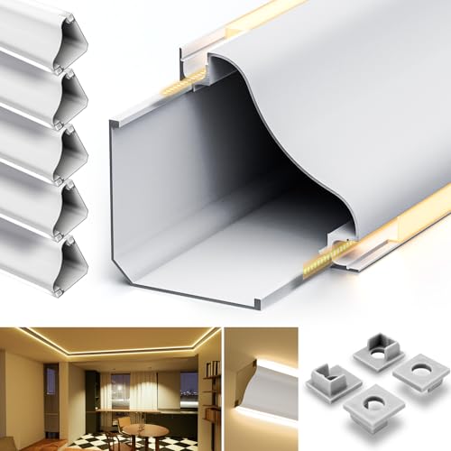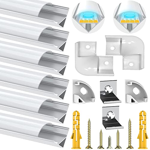 Chesbung LED-aluminiumprofil för LED-remsor, 6 x V-formade aluminiumprofiler 1 m med mjölkvitt lock, LED-diffusor med 45° hörnkontakter