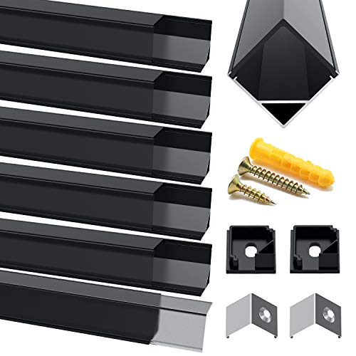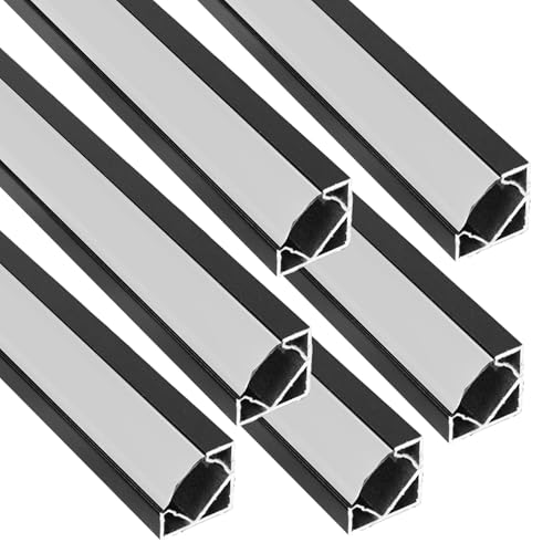 Chesbung LED aluminiumprofil, svart för LED-remsor, 6 x 1 m, lister, profil, V-form, kanal, hörnprofil, diffusörlist, aluminiumprofiler med ändlock, metallfästklämmor och monteringsmaterial