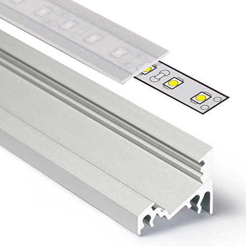 Alupona Aluprofil CORNER (CO) 2 meter aluminium profil anodiserad för LED-remsor – set inklusive lock satinerad halvtransparent med monteringsklämmor och ändlock (2 meter satinerat slide)