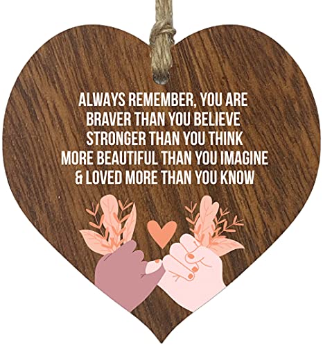 Always Remember You Are Loved More Than You Know, mörkt trä hängande hjärtskylt, vänskapsgåvor för kvinnor, födelsedagspresenter till henne, positiva inspirerande gåvor, bästa vän uppmuntra gåvor