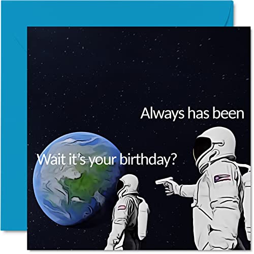 Roliga födelsedagskort för kvinnor män – Always Has Been Meme – roligt födelsedagskort för bästa vän syster bror kusin farbror moster kollega, 145 mm x 145 mm humor födelsedag skämt hälsningskort