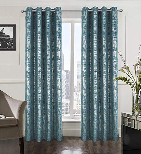 always4u Mjuka sammetsgardiner 213 cm långa lyxiga sovrumsgardiner silverfolie tryck fönsterbehandlingar för vardagsrum uppsättning av 2 blågrön