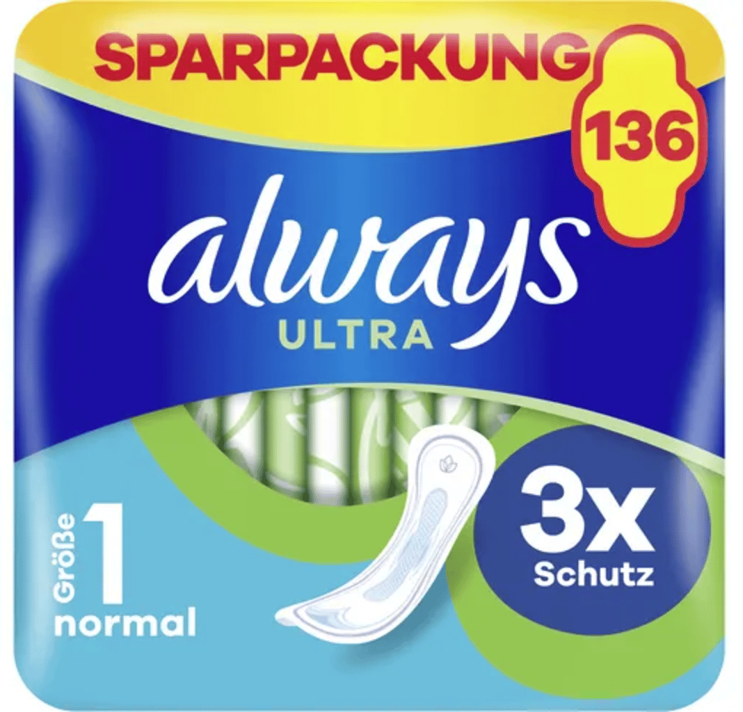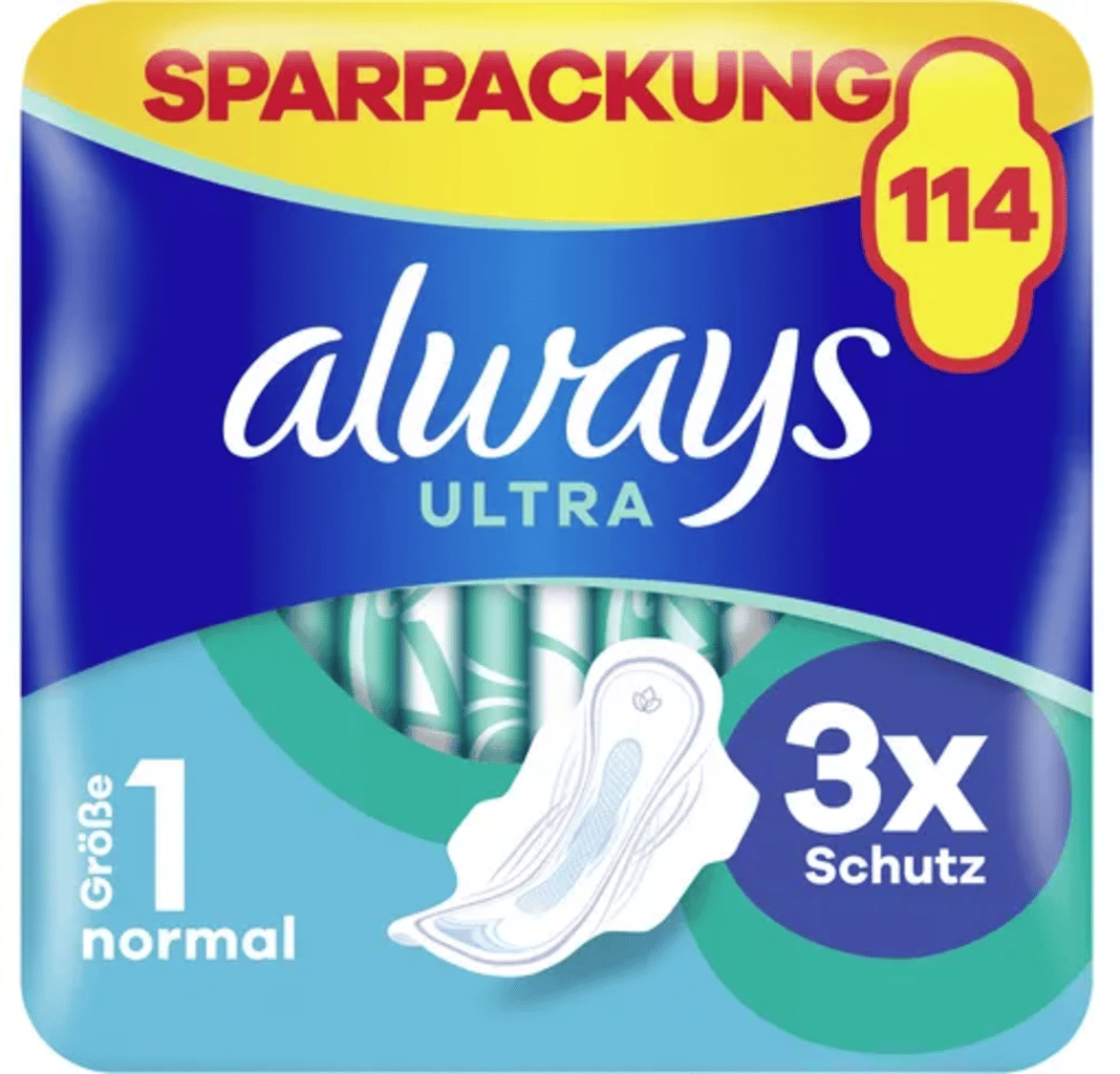 Alltid Ultra normal (storlek 1) sanitetsbindor med vingar, 56 stycken