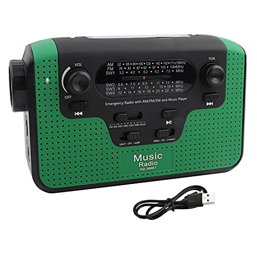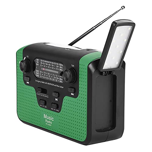 Self Powered radio, FM/AM/SW Solar Hand Crank-radio med minneskort musik för handsfritt samtal, Solar FM-radio, LED-ficklampa (grön)