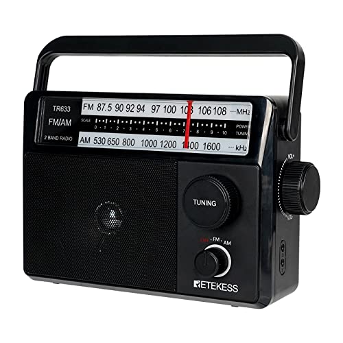 Retekess TR633 Portable Radio, AM FM Radio Mains and Battery, Transistor, Jack -Headset, Stor Högtalare, Enkel för äldre (svart)