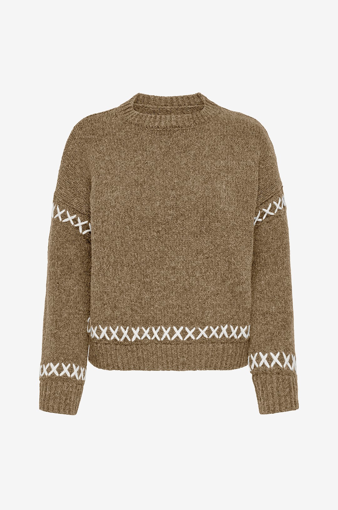 Only - Tröja onlAmanda Life LS O-neck Detail CC - Brun