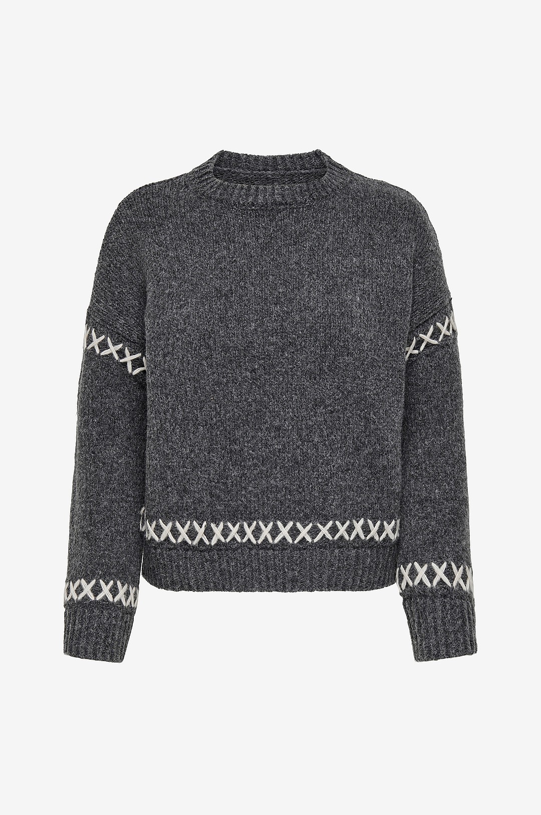 Only - Tröja onlAmanda Life LS O-neck Detail CC - Grå