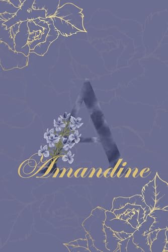 Amandine Journal: Monogram A Personalized Floral Notebook for Women Decorative Purple and Gold Monogram Journal, Cute Aesthetic Notebook, Personalized Diary and Birthday Gift for Women Named Amandine