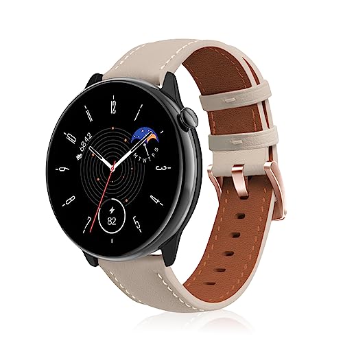KeeFos 20 mm armband kompatibelt med Amazfit Active 2 Square/Active 2/GTR Mini/GTR 42 mm/GTS 4/4 Mini/3/2e/2 Mini/2/Bip 3 Pro/Bip 3, klockarmband i läder för kvinnor och män, mjukt ersättningsarmband