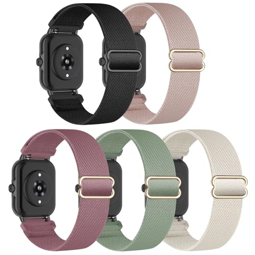 Wizvv 5-pack 20 mm nylonarmband kompatibelt med Amazfit Active 2/GTS 4/GTS 3/GTS 2/GTS 4 Mini/GTS 2 Mini/Bip U Pro/Bip 3 Pro/Bip Lite, Loop ersättningsband för Galaxy Watch 6/5/4 40 mm 44 mm män