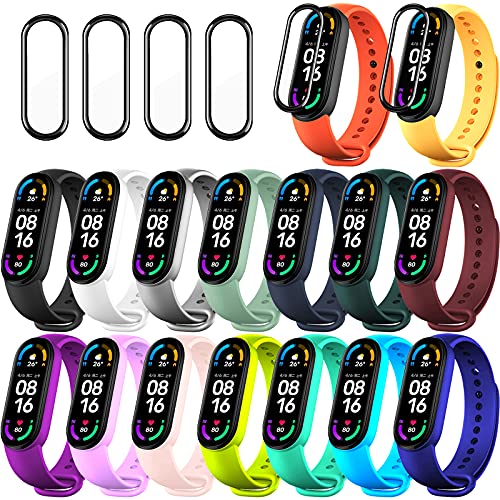 BANGTING 20 stycken armband kompatibla med Xiaomi Mi Band 6/Xiaomi Mi Band 5/Amazfit Band 5, ersättningsarmband för Mi Fit Band 5 NFC ersättningsband Miband 5 armband (16 färger 4 skyddsfolie)