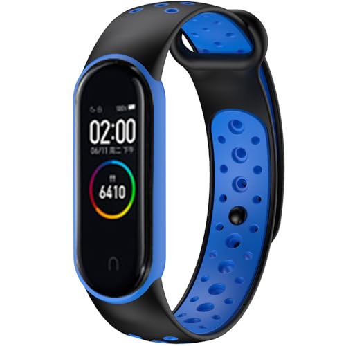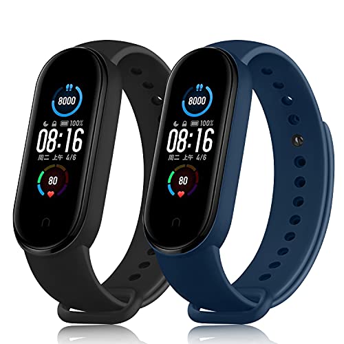 MXSYC Armband kompatibelt med Xiaomi Mi Band 6/Xiaomi Mi Band 5/Amazfit Band 5, ersättningsband silikon sport vattentätt för Xiaomi Mi Band 6/Mi Band 5/Amazfit Band 5 (svart/marinblå)