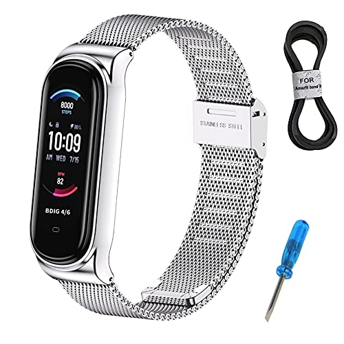 BDIG Armband kompatibelt med Amazfit Band 5, metall ersättningsarmband vattentätt rostfritt stål ersättning armband tillbehör klockarmband för Amazfit Band 5 (No Watch Host)
