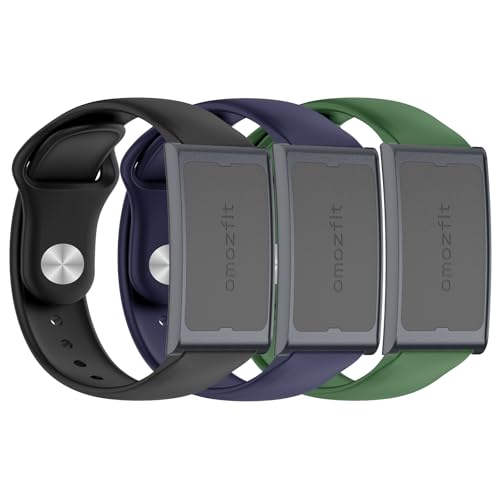 OUTPUTBT 3 stycken silikonarmband kompatibelt med Amazfit Helio Strap Smart Band ersättningsarmband för kvinnor män, 3 st, Silikon Rostfritt stål