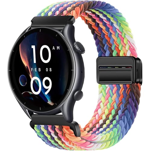 ZoRoll 3 stycken 22 mm armband för Amazfit Bip 6/Bip 5/Balance/Cheetah Pro/Cheetah/GTR 3 Pro/3/2e/2, nylonersättningsarmband för Amazfit GTR 47 mm/Huawei Watch GT 3 Pro 46 mm - svart regnbågsgrön och