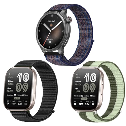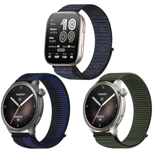 ZoRoll 3 stycken 22 mm armband för Amazfit Bip 6/Bip 5/Balance/Cheetah Pro/Cheetah/GTR 3 Pro/3/2e/2, nylonersättningsarmband för Amazfit GTR 47 mm/Huawei Watch GT 3 Pro 46 mm – svart + armégrön + blå