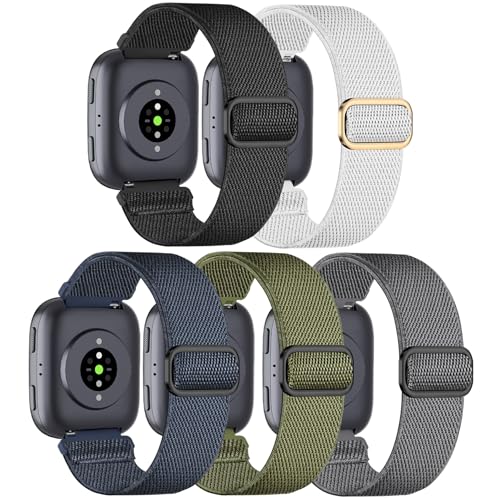 Wizvv 22 mm armband kompatibelt med Amazfit Bip 6/Bip 5/GTR 3/GTR 3 Pro/GTR 4/GTR 2/GTR 47 mm, 5 stycken elastiska armband för Amazfit Stratos/Stratos 2/Stratos 3/Pace/Balance