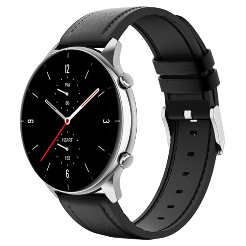Läder Ersättningsband för Amazfit Bip 6/5 Unity/Stratos 3/2/2S/Pace, 22mm Sport Armband Klockarmband, Ersättningsrem för Amazfit GTR 47mm/GTR 4/3/3 Pro/2/Balance 46mm/Balance 2