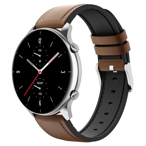 MoKo Strap Compatible with Amazfit Balance/Bip 5/GTR 2/2e/3/3 Pro/4/GTR 47mm/Cheetah Round/Pro/Stratos 2/3, 22mm Hybrid Leather Silicone Replacement Sport Watch Band for Men Women, Brown