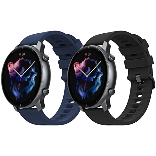 MoKo 2 Pack Straps Compatible with Amazfit Bip 5/Balance/Cheetah Round/Cheetah Pro/GTR 4/GTR 3/3 Pro/GTR 2/2e/GTR 47mm/Stratos 3/2, 22mm Soft Silicone Replacement Sport Watch Band for Women Men, B+MB