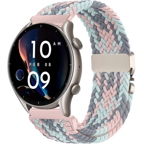 OUTPUTBT Elastiskt nylonarmband kompatibelt med Amazfit Helio Strap Smart Band/Bip 6/Bip 5/Bip 5 enhet/Balance/GTR 4/GTR4 Pro/GTR 3/GTR3 Pro/GTR 2/GTR 47 mm. ersättningsarmband sport för kvinnor och