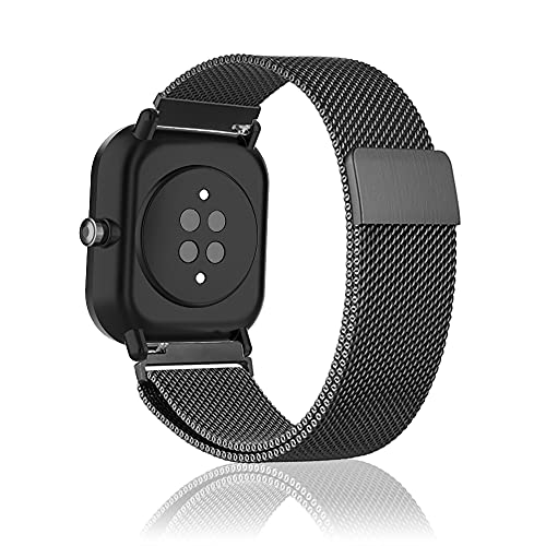 Niboow 20 mm armband för Amazfit GTS 4/GTS 3/GTS 4 Mini/GTS 2 Mini/GTS 2e/GTS 2/GTS/GTR 42 mm, rostfritt metallnät armband för Amazfit Bip 3 Pro/Bip 3/Bip/Bip S/Bip Lite/Bip U Pro - svart