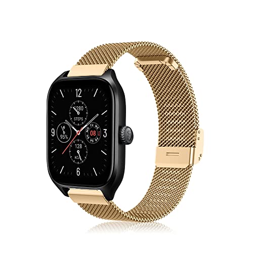 Niboow 20 mm armband för Amazfit GTS 4/GTS 3/GTS 4 Mini/GTS 2 Mini/GTS 2e/GTS 2/GTR 42 mm, metallrostfritt stål klockarmband för Amazfit Bip 3 Pro/Bip 3/Bip S/Bip Lite/Bip U Pro – guld