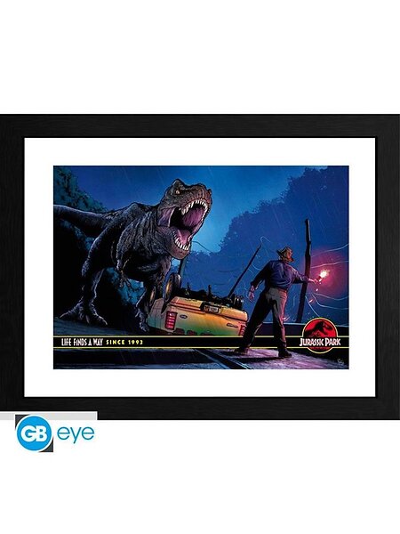 Universal Studios Inramat tryck Alan Grant vs T-Rex 30x40 x2