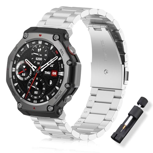 ToVioc Armband kompatibelt med Amazfit T-Rex 3, män och kvinnor ersättningsband i rostfritt stål för Amazfit T-Rex 3 – silver, rostfritt stål