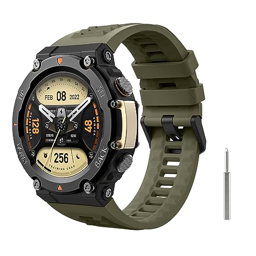 MoKo Watch Strap Compatible with Amazfit T-Rex 2 Outdoor GPS Smartwatch, Soft Silicone Replacement Band Sport Wristband with a Metal Screwdriver, Jungle Green