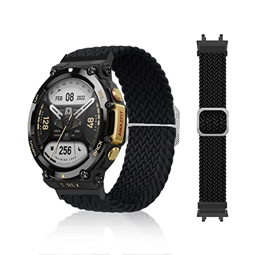 SeNool Armband kompatibelt med Amazfit T-Rex 2, flätat elastiskt nylon ersättningsarmband [mjukt, ventilerande, lätt], klockarmband för Amazfit T-Rex 2 – svart