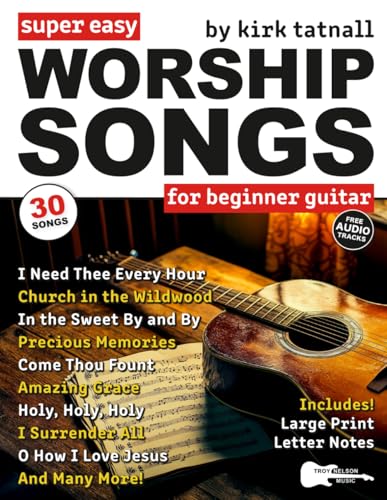 Super Easy Worship Songs for Beginner Guitar: 30 Hymns and Gospels in Big Letter Notes and Guitar Tab—Amazing Grace, Holy, Holy, Holy, and More