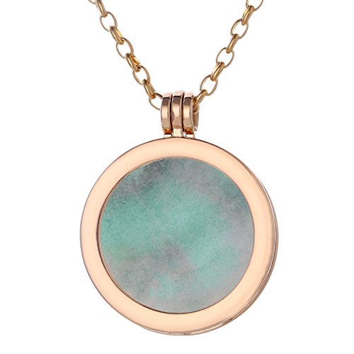 Morella damhalsband guld 70 cm av rostfritt stål och hänge med ädelsten amazonit coin 33 mm chakra platta i smyckespåse