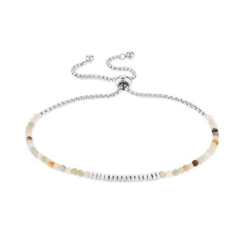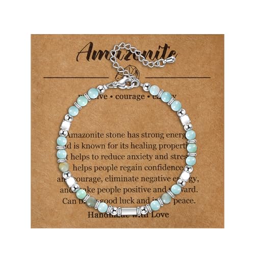 Candyfancy Armband för damer i natursten, ädelstensarmband för kvinnor med naturliga, äkta stenar, pärlarmband för kvinnor, justerbar längd 18+5 cm, Eine Grösse, Rostfritt stål, Amazonit