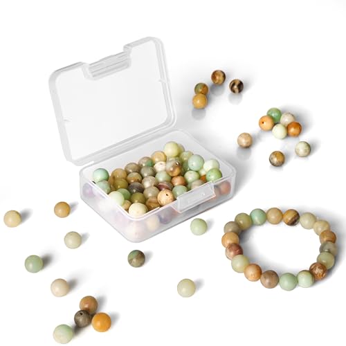 Belle Vous Naturliga Amazonit Sten Rund Lösa Pärlor med Förvaringslåda (100 Pack) – 8,6 mm Kristall Energi Läkande Ädelsten Pärla Uppsättning för att Göra Smycken & Armband